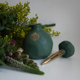 Bottle: Handmade slip cast porcelain bottle with a 22k gold dipped wand.